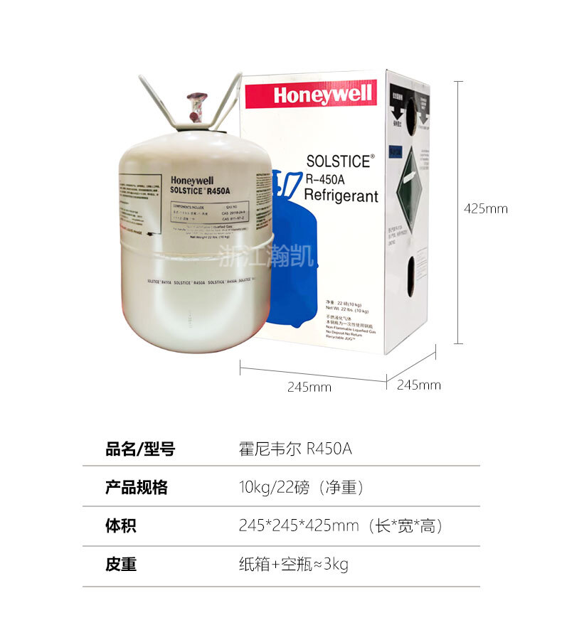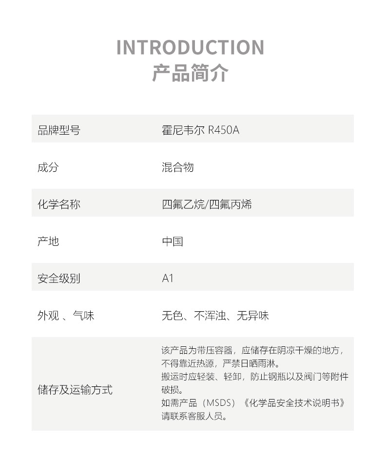 R450A制冷劑,商品名稱Solstice®N13,R450A是一種非易燃,低GWP替代HFC-134a的中溫應(yīng)用制冷劑,適用于如熱泵,風(fēng)冷和水冷式冷卻器,區(qū)域供熱和制冷系統(tǒng),自動(dòng)售貨機(jī)和飲料分配器,CO2級(jí)聯(lián)系統(tǒng)等。